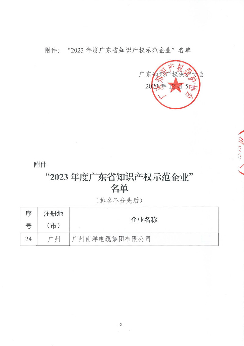 作為廣東省電線電纜龍頭企業,公司將繼續發揮行業引領示范作用,持續加大對產品研發和知識產權的投入,不斷完善企業核心技術研發創新體制機制,加強知識產權的保護和管理,不斷提升知識產權綜合競爭優勢,帶動公司技術創新、產品升級和市場競爭力提升,引領行業高質量發展。