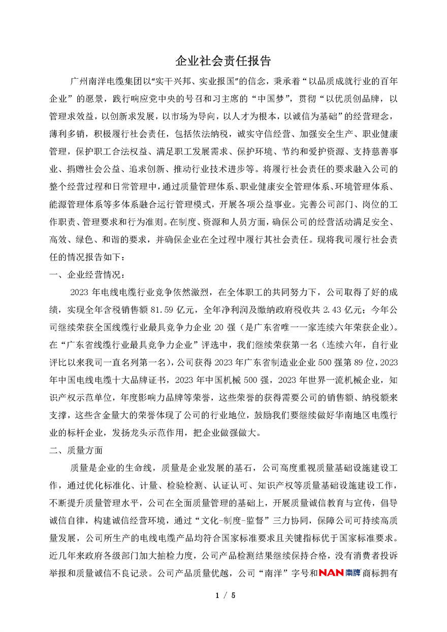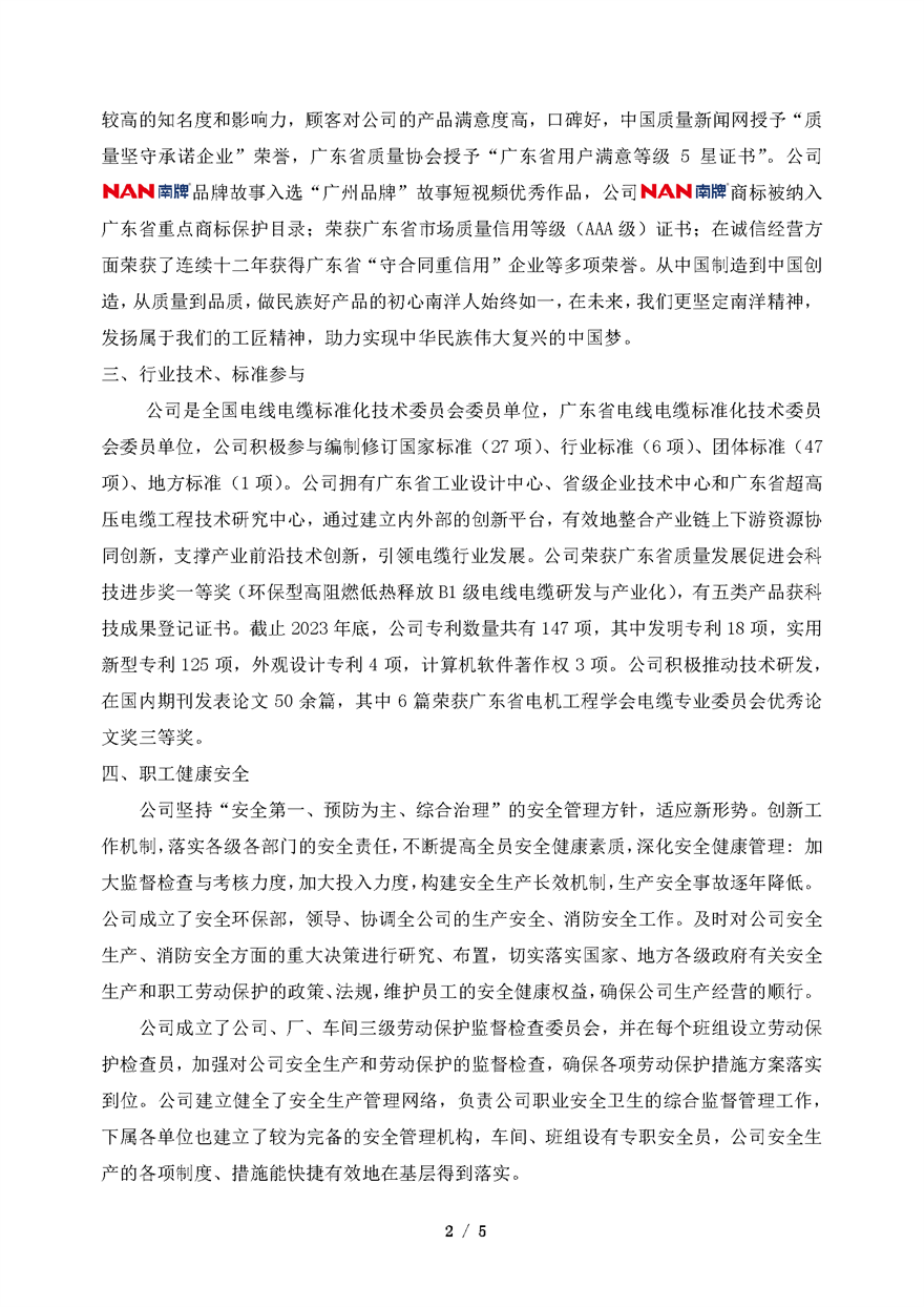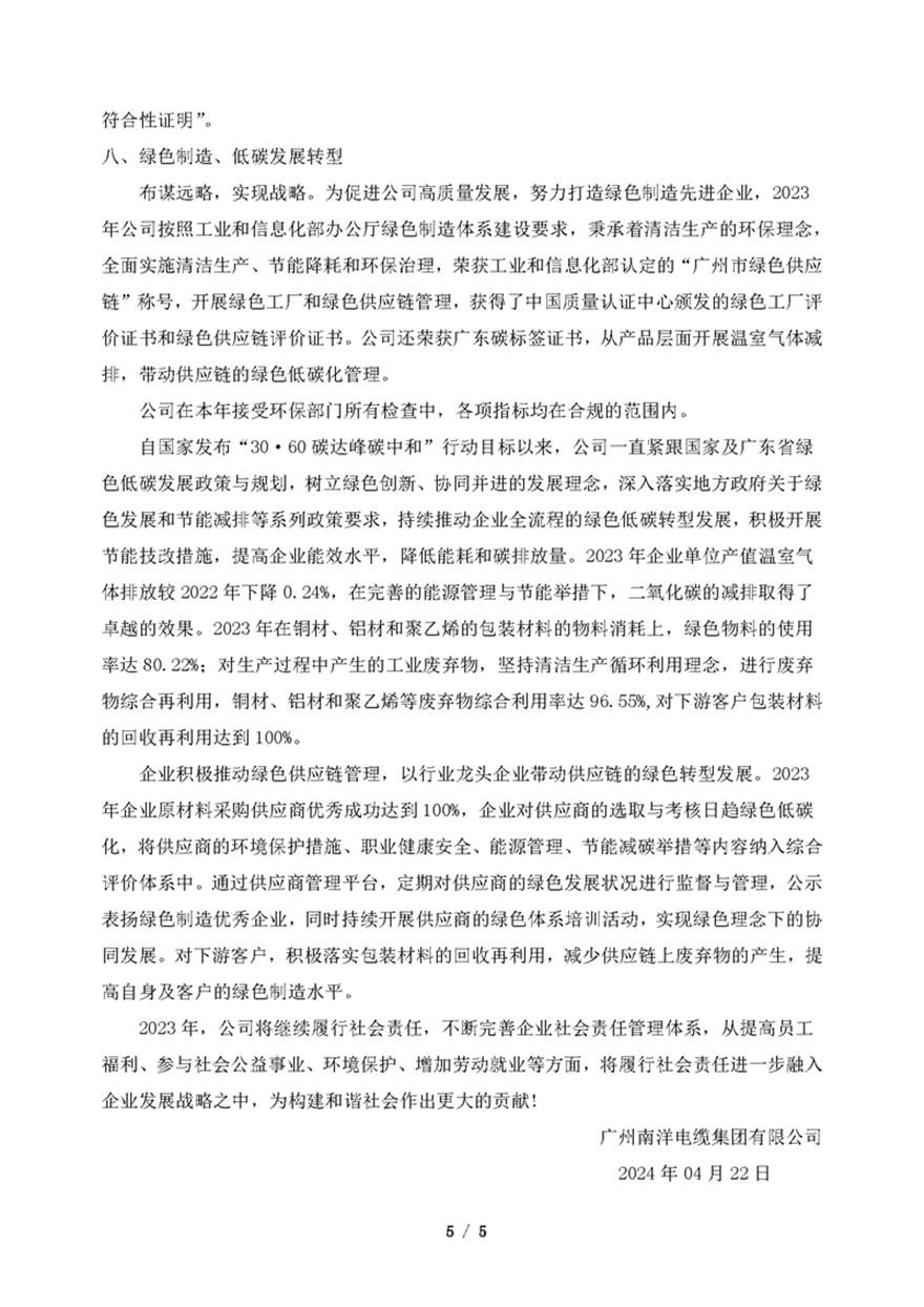 2023年廣州南洋電纜集團有限公司企業社會責任報告