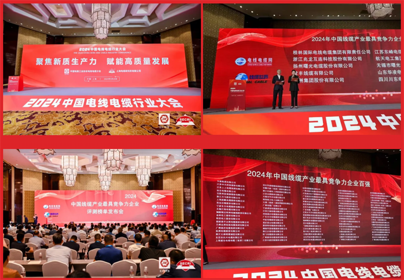 2024年9月24日,“2024年度中國線纜產業最具競爭力企業”授牌儀式在上海隆重舉行。當日,在萬眾矚目中,“2024年度中國線纜產業最具競爭力企業100強”“2024年度中國線纜產業最具競爭力企業20強”“2024年度中國線纜產業最具競爭力企業10強”等多個榜單盛大揭曉,來自全國各地的線纜行業杰出代表齊聚一堂,共同慶祝并見證這一榮耀時刻。
