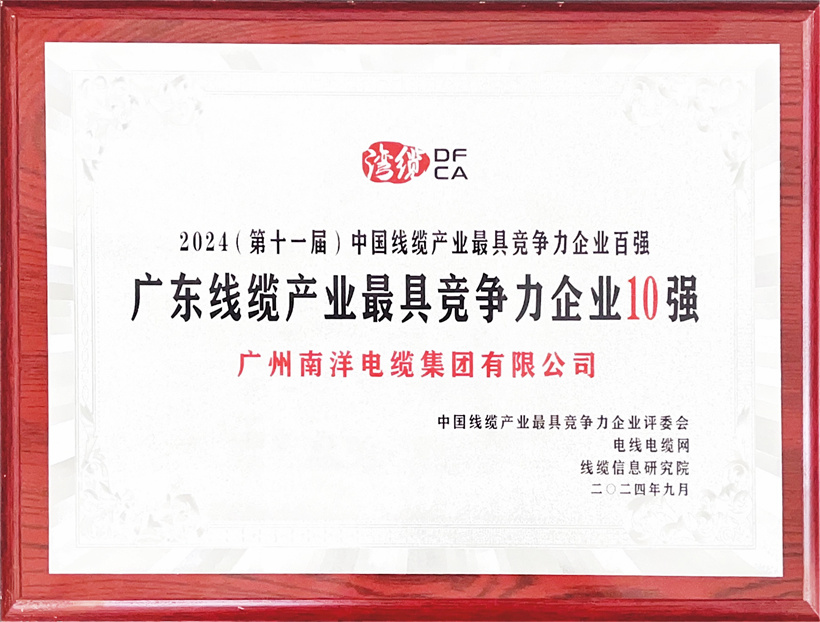 中國線纜產業最具競爭力企業評測工作始于2014年,發展十一年至今,百強評測活動如同燈塔,在行業內熠熠生輝。它見證了行業的成長與變遷,成為衡量線纜企業競爭力的重要標桿。評選活動嚴格核實企業的營業收入、納稅總額、企業規模、增長和效率、質量和創新及品牌形象等硬性指標及行業貢獻,評價結果具有權威性。我司連續7年蟬聯中國線纜產業20強,連續7年蟬聯廣東線纜產業最具競爭力企業第一名,將再接再厲,繼續堅持以高質量和創新提高公司的核心競爭力,繼續保持穩步健康發展。同時將繼續發揮廣東電線電纜龍頭企業的示范作用,助力廣東線纜產業高質量發展,為國家經濟發展作出更大的貢獻。