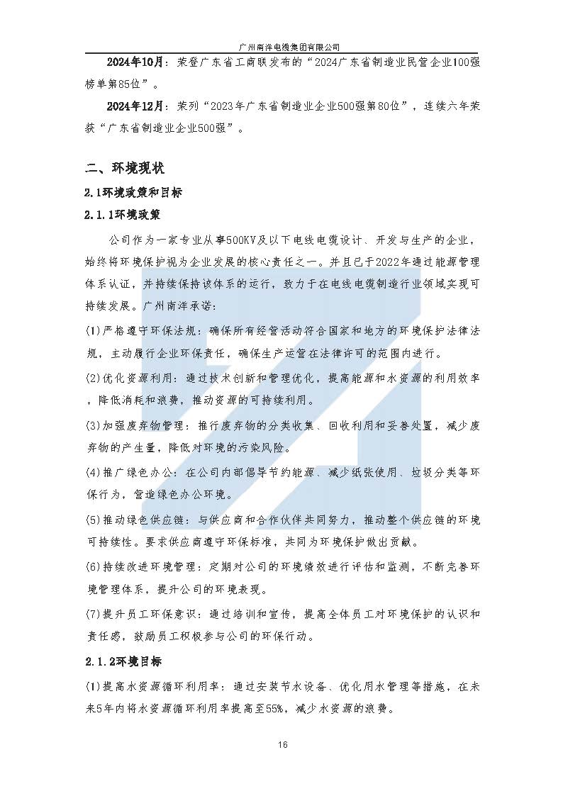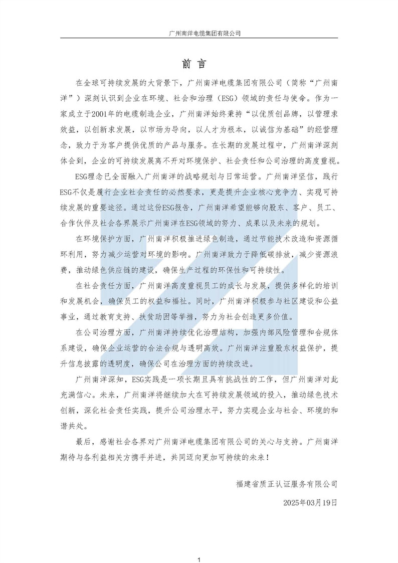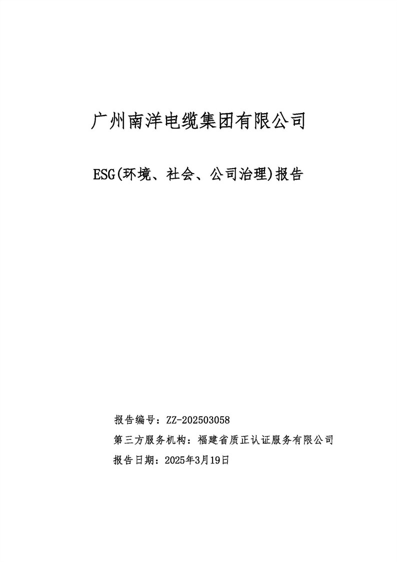 廣州南洋電纜集團有限公司ESG(環境、社會、公司治理)報告